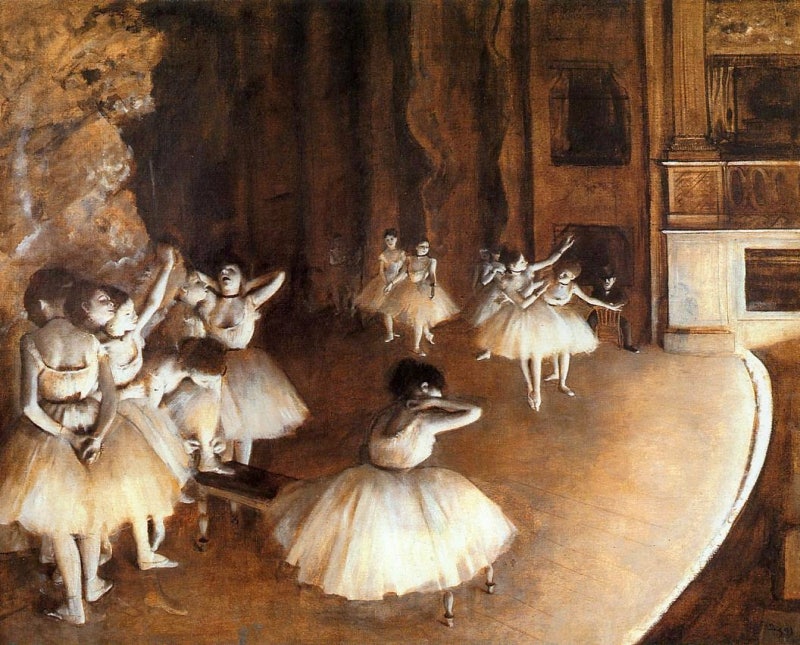 드가의 가장 대표적인 소재인 발레리나는 이 점을 극명하게 보여준다. 일반적으로 발레리나는 우아함의 상징이지만, 그의 그림 속 인물들은 언제나 긴장되고, 때때로 지쳐 있으며, 불완전한 자세로 존재한다. 그는 무대 위의 찬란한 순간보다 무대 뒤의 불편한 현실을 택했다. 이것은 인상주의가 추구한 아름다운 ‘순간의 감각’이 아니라, 그 순간을 가능하게 만드는 반복과 노동, 그리고 억눌린 신체의 기록이었다.